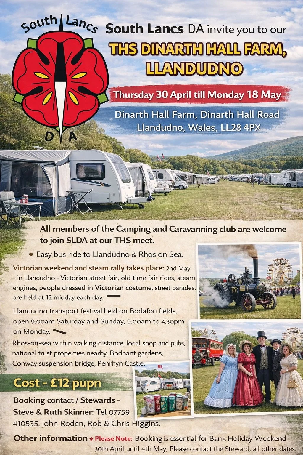Booking contact / Stewards - Steve & Ruth Skinner: Tel 07759 410535. John Roden, Rob & Chris Higgins.